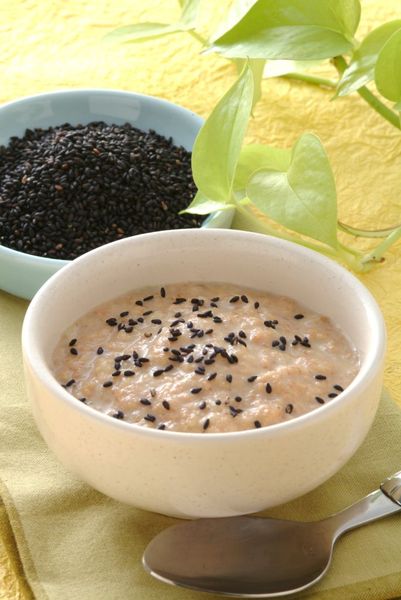 *材料:米、燕麥、黑芝麻 1/4杯;糖適量
