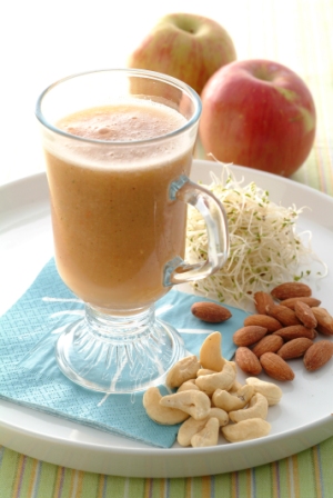 <font color="#ff6600"><a target="_blank" href="http://www.pixnet.net/photo/vivanuts/93189605"><img style="WIDTH: 235px; HEIGHT: 275px" height="313" src="http://pic.pimg.tw/vivanuts/1213611235.jpg" width="260" border="0" /></a><br /> <font size="2"><span lang="EN-US">*</span><span style="FONT-FAMILY: 新細明體; mso-ascii-font-family: 'Times New Roman'; mso-hansi-font-family: 'Times New Roman'">材料:</span></font></font><p class="MsoNormal"><font size="2"><span lang="EN-US">1.</span><span style="FONT-FAMILY: 新細明體; mso-ascii-font-family: 'Times New Roman'; mso-hansi-font-family: 'Times New Roman'">水果類:西瓜或蘋果</span><span lang="EN-US">1</span><span style="FONT-FAMILY: 新細明體; mso-ascii-font-family: 'Times New Roman'; mso-hansi-font-family: 'Times New Roman'">杯</span><span lang="EN-US"> (</span><span style="FONT-FAMILY: 新細明體; mso-ascii-font-family: 'Times New Roman'; mso-hansi-font-family: 'Times New Roman'">任選一種</span><span lang="EN-US">)<br /></span></font></p><!-- more --><p class="MsoNormal"><font size="2"><span lang="EN-US"><br />2.</span><span style="FONT-FAMILY: 新細明體; mso-ascii-font-family: 'Times New Roman'; mso-hansi-font-family: 'Times New Roman'">野菜類:地瓜菜或龍葵</span><span lang="EN-US">1.5</span><span style="FONT-FAMILY: 新細明體; mso-ascii-font-family: 'Times New Roman'; mso-hansi-font-family: 'Times New Roman'">杯</span><span lang="EN-US"> (</span><span style="FONT-FAMILY: 新細明體; mso-ascii-font-family: 'Times New Roman'; mso-hansi-font-family: 'Times New Roman'">任選一種</span><span lang="EN-US">)</span></font></p><p class="MsoNormal"><font size="2"><span lang="EN-US"><br />3.</span><span style="FONT-FAMILY: 新細明體; mso-ascii-font-family: 'Times New Roman'; mso-hansi-font-family: 'Times New Roman'">芽菜類:各種芽菜</span><span lang="EN-US"> (</span><span style="FONT-FAMILY: 新細明體; mso-ascii-font-family: 'Times New Roman'; mso-hansi-font-family: 'Times New Roman'">苜蓿芽最佳</span><span lang="EN-US">) 1/2</span><span style="FONT-FAMILY: 新細明體; mso-ascii-font-family: 'Times New Roman'; mso-hansi-font-family: 'Times New Roman'">杯</span><span lang="EN-US"> (</span><span style="FONT-FAMILY: 新細明體; mso-ascii-font-family: 'Times New Roman'; mso-hansi-font-family: 'Times New Roman'">任選一種</span><span lang="EN-US">)</span></font></p><p class="MsoNormal"><font size="2"><span lang="EN-US"><br />4.</span><span style="FONT-FAMILY: 新細明體; mso-ascii-font-family: 'Times New Roman'; mso-hansi-font-family: 'Times New Roman'">堅果類:杏仁或核桃</span><span lang="EN-US">1</span><span style="FONT-FAMILY: 新細明體; mso-ascii-font-family: 'Times New Roman'; mso-hansi-font-family: 'Times New Roman'">湯匙</span><span lang="EN-US"> (</span><span style="FONT-FAMILY: 新細明體; mso-ascii-font-family: 'Times New Roman'; mso-hansi-font-family: 'Times New Roman'">任選一種</span><span lang="EN-US">)</span></font></p><p class="MsoNormal"><font size="2"><span lang="EN-US"><br />5.</span><span style="FONT-FAMILY: 新細明體; mso-ascii-font-family: 'Times New Roman'; mso-hansi-font-family: 'Times New Roman'">海藻類:海帶或紫菜</span><span lang="EN-US"> 1/2</span><span style="FONT-FAMILY: 新細明體; mso-ascii-font-family: 'Times New Roman'; mso-hansi-font-family: 'Times New Roman'">湯匙</span><span lang="EN-US"> (</span><span style="FONT-FAMILY: 新細明體; mso-ascii-font-family: 'Times New Roman'; mso-hansi-font-family: 'Times New Roman'">任選一種</span><span lang="EN-US">)</span></font></p><p class="MsoNormal"><span style="FONT-FAMILY: 新細明體; mso-ascii-font-family: 'Times New Roman'; mso-hansi-font-family: 'Times New Roman'"><font size="2"><br />另備:甘蔗汁</font></span></p><p class="MsoNormal"><span lang="EN-US"><o:p><font size="2"> </font></o:p></span></p><p class="MsoNormal"><font color="#ff6600"><font size="2"><span lang="EN-US">*</span><span style="FONT-FAMILY: 新細明體; mso-ascii-font-family: 'Times New Roman'; mso-hansi-font-family: 'Times New Roman'">作法:</span></font></font></p><p class="MsoNormal"><font size="2"><span lang="EN-US"><br />1.</span><span style="FONT-FAMILY: 新細明體; mso-ascii-font-family: 'Times New Roman'; mso-hansi-font-family: 'Times New Roman'">堅果泡</span><span style="FONT-FAMILY: 新細明體">軟、切碎和水果榨成汁。水分不足時再加上甘蔗汁<span lang="EN-US"><o:p></o:p></span></span></font></p><p class="MsoNormal"><font size="2"><span lang="EN-US" style="FONT-FAMILY: 新細明體"><br />2.</span><span style="FONT-FAMILY: 新細明體">加上野菜和海藻類打勻,最後加入芽菜,以瞬間開、關的方式打勻即可<span lang="EN-US"><o:p></o:p></span></span></font></p>